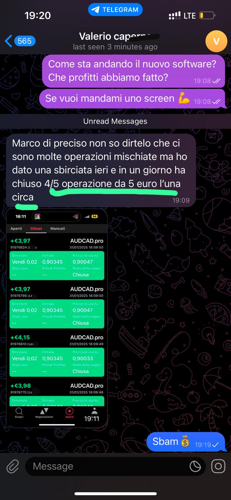 Le informazioni presenti su questo sito web, sui profili social, non costituiscono in alcun modo “consulenza in materia di investimenti” ex art. 1 c. 5 septies del Dlgs 58/98, per una serie di motivazioni, tra queste: NON sono personalizzate ma sono rivolte ad un’ampia platea e, dunque, NON sono fornite conoscendo le caratteristiche di ogni singolo utente/visitatore. Le medesime, inoltre, non so da intendersi raccomandazioni di investimento, ma semplici idee di investimento dell’autore e sono generalmente fornite a scopo puramente informativo o didattico. Tutti gli articoli del sito, canali social in cui vengono trattati argomenti relativi al trading o a investimenti in generale o gestione denaro, presentano “disclaimer” e “alert” che invitano l’utente ad informarsi il più possibile sui rischi relativi. Prima di ogni cosa, quindi, leggi con attenzione i disclaimer presenti nei canali social legati alla community. Nello specifico qualsiasi informazione riportata su questo sito, su qualsiasi sito correlato e di proprietà dell'utente e su qualsiasi canale social è da intendersi a scopo prettamente informativo, educativo o di apprendimento. Qualsiasi Software nominato non ha altra finalità se non quella di mostrare il funzionamento del ciclo economico e dell’automazione computeristica possibile attraverso la programmazioneTra il 74% e l'89% delle persone che si affacciano al mondo degli investimenti perdono soldi. Dovresti considerare di capire come funziona il mondo degli investimenti prima di investire e di investire solamente ciò che puoi permetterti di perdere.Prestazioni passate non garantiscono prestazioni future.